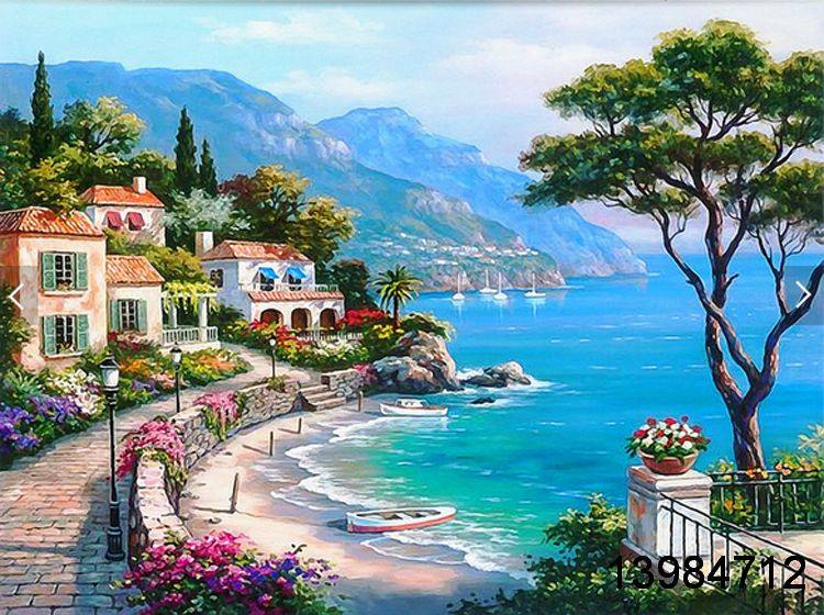 瓷砖背景墙 客厅电视墙沙发瓷砖影视墙墙砖陶瓷画海滩风景壁画热门设计联盟服务商