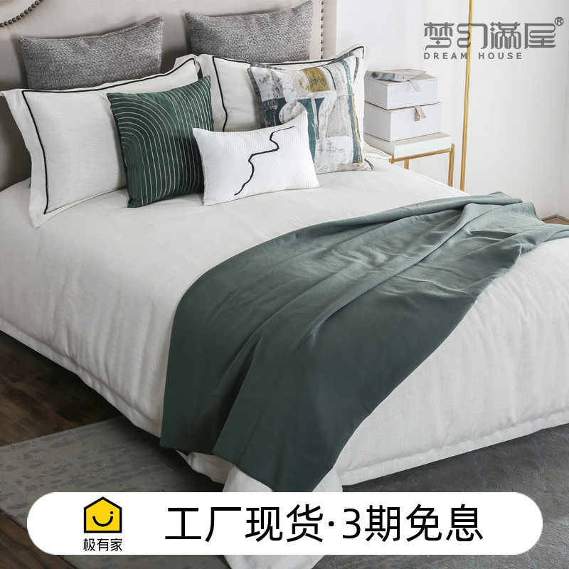 样板间床品简约北欧绿色系高端售楼部别墅家具店酒店会所软装摆场热门设计联盟服务商