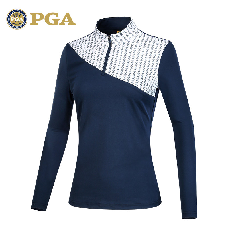 美国PGA高尔夫长袖女数码印花女装球衣拉链立领春夏季服装上衣服热门设计联盟服务商