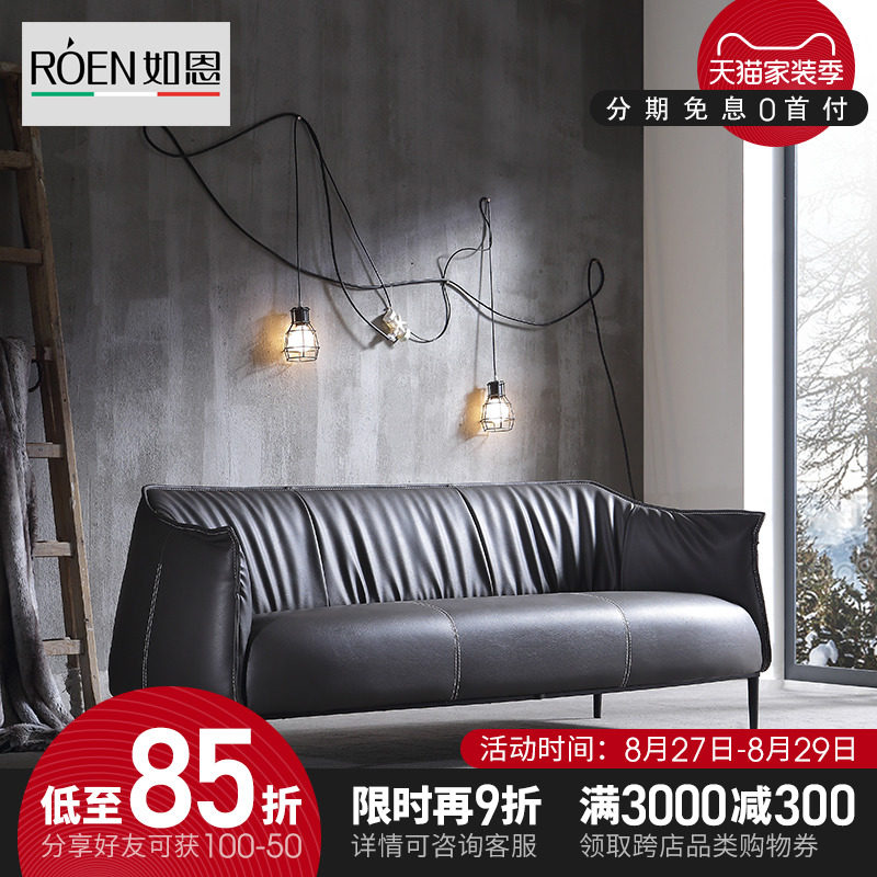 如恩北欧三人位沙发客厅简约现代真皮沙发设计师工业风皮沙发B086热门设计联盟服务商