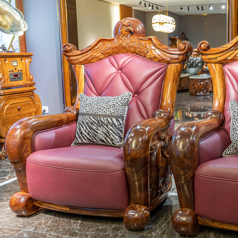 慕语乌金木真皮沙发别墅大户型豪华沙发办公室星级酒店大鹰展翅热门设计联盟服务商
