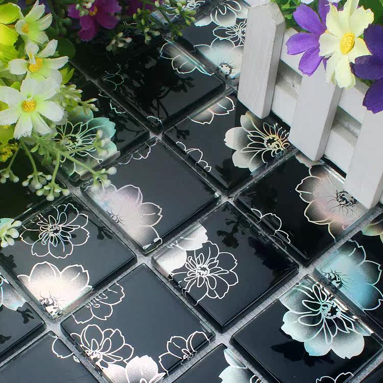 黑白马赛克背景墙 黑白玻璃 黑白浴室瓷砖 室内装饰建材 酒店装修热门设计联盟服务商