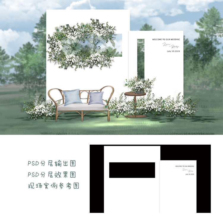 白绿色花艺牛油果绿婚礼效果图舞台背景设计室内户外草坪psd热门设计联盟服务商