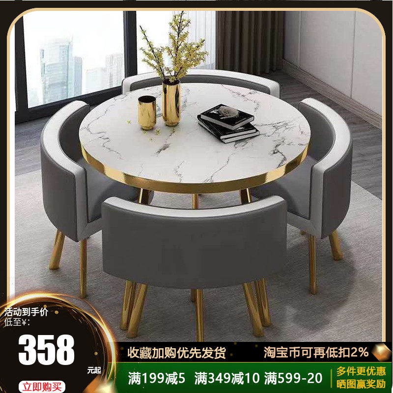 北欧简约大理石纹洽谈桌椅组合轻奢售楼处接待会客休闲小圆桌餐桌热门设计联盟服务商