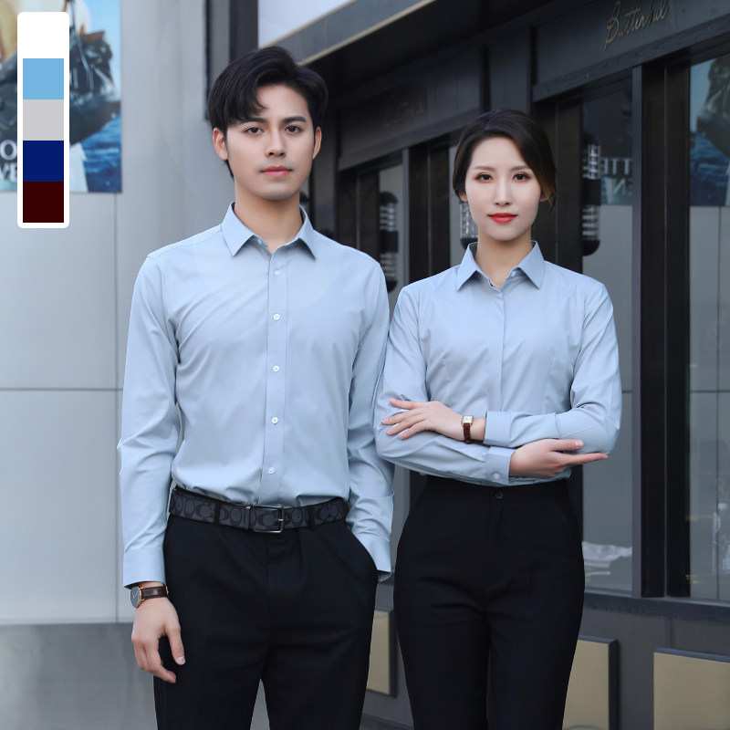 男女长袖衬衣力竹纤维修身浅蓝色衬衫商务工作服企业定制logo热门设计联盟服务商