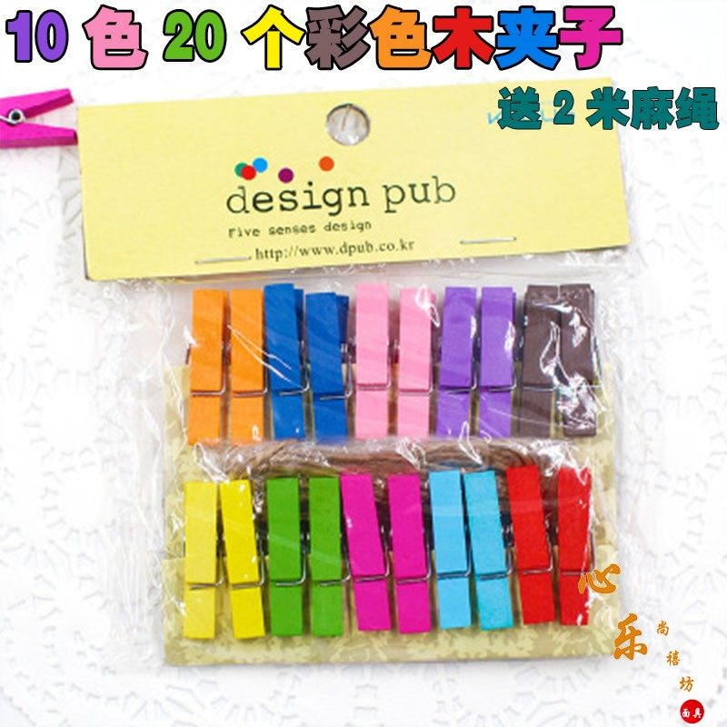 diy彩色木夹50个照片装饰夹子木质夹书签夹相片夹送麻绳送无痕钉热门设计联盟服务商