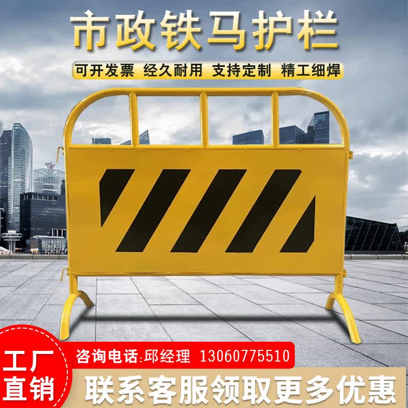 道路安全黄黑马路临时移动护栏交通建筑施工移动市政工程铁马护栏热门设计联盟服务商